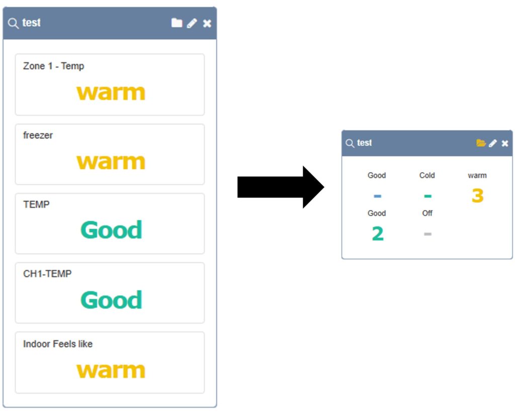 대시보드에서 많은 센서 값을 표현할 때 문제가 되는 센서가 한 눈에 확인 할 수 있는 기능입니다.